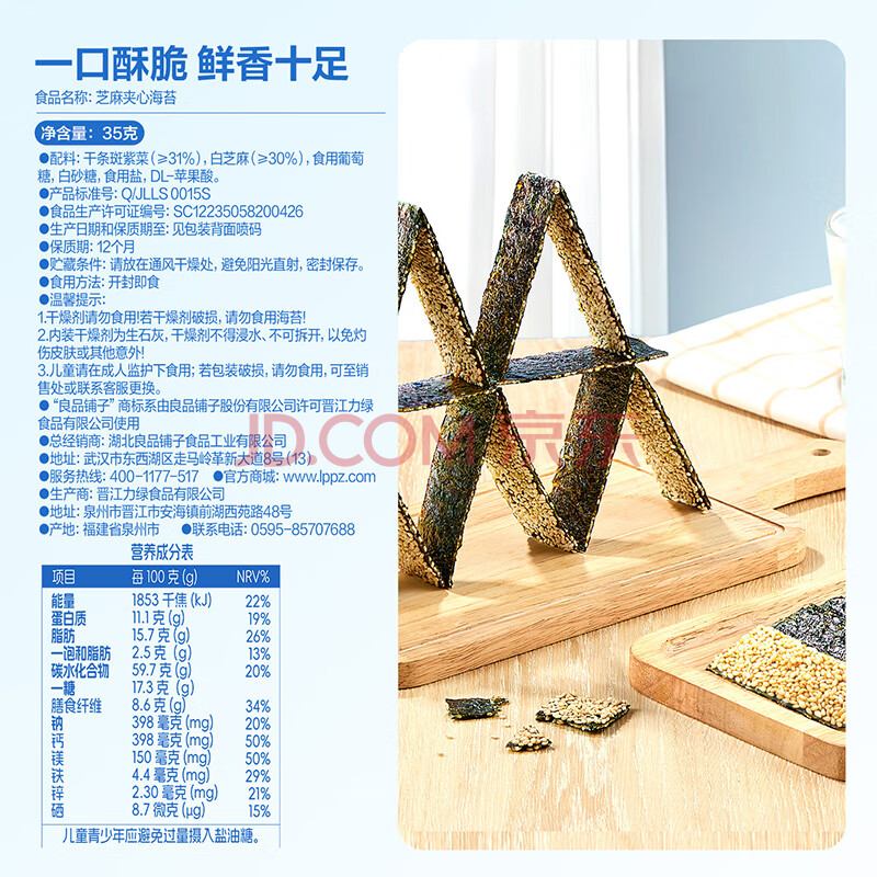 商品相册:良品铺子芝麻夹心海苔儿童食海苔夹心脆 非油炸即食紫菜休闲零食小吃35g第