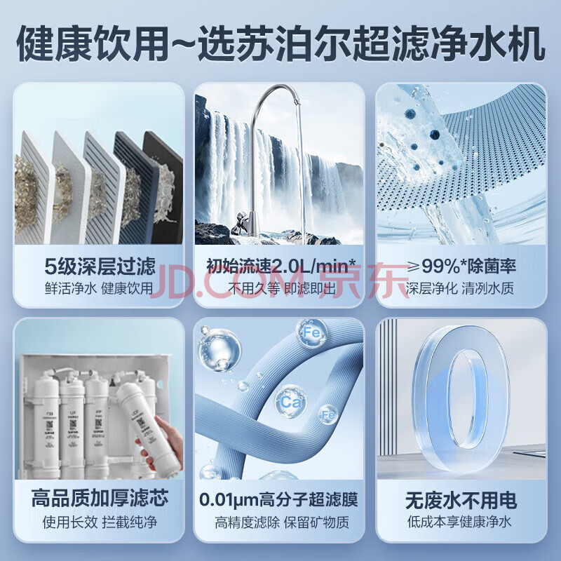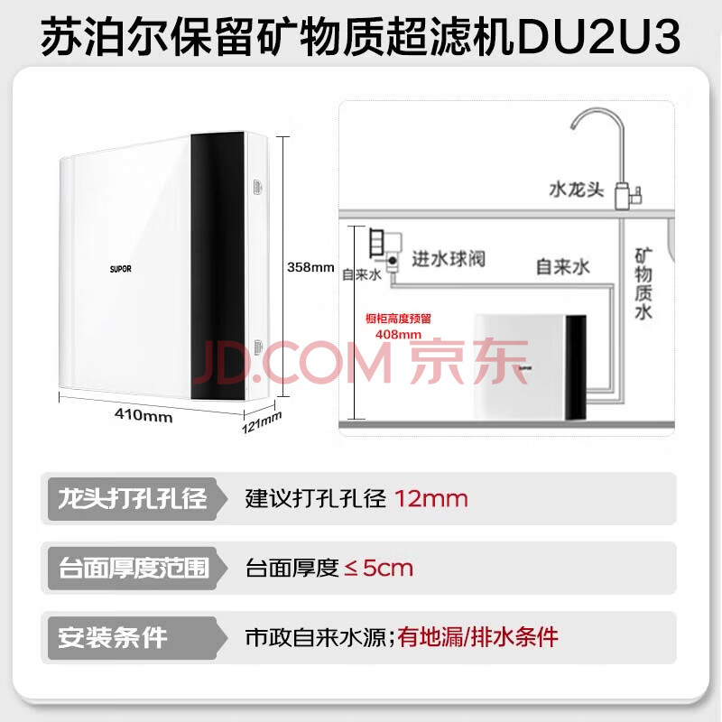 商品相册:苏泊尔(SUPOR)净水器家用超滤机滤水器厨下式自来水净化器DU2U3厨房净水器水龙头台式过滤器净水机第
