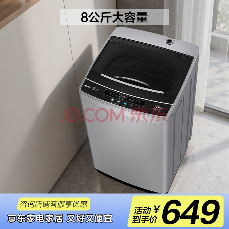 商品相册:威力(WEILI) 波轮洗衣机 8KG全自动大容量 13分钟快洗 10档水位 护衣内筒防锈箱体 XQB80-1999第