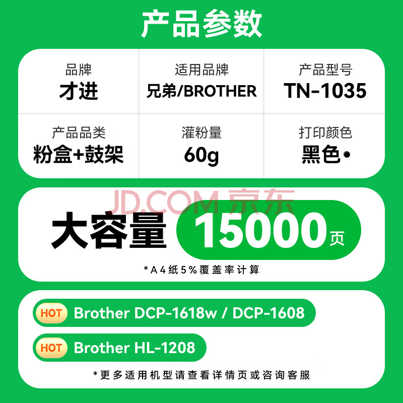 商品相册:才进适用兄弟DCP1608硒鼓1618W TN1035粉盒1813 1816 1818 1819打印机墨盒MFC1919NW 1906 1908 HL1208 1218w第