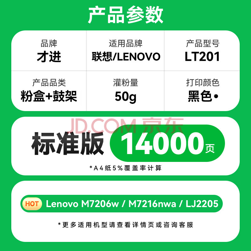 商品相册:才进适用联想m7206硒鼓lt201粉盒m7216nwa打印机m7206w墨盒s1801 m7256whf复印一体lj2205墨粉m1851碳粉m1840第1张/共8