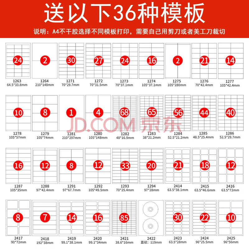商品相册:易利丰(elifo)A4不干胶打印纸 带背胶打印纸 不粘胶标签贴纸 可粘贴自粘纸 光面标签纸 亮面铜版纸标贴80张白色第