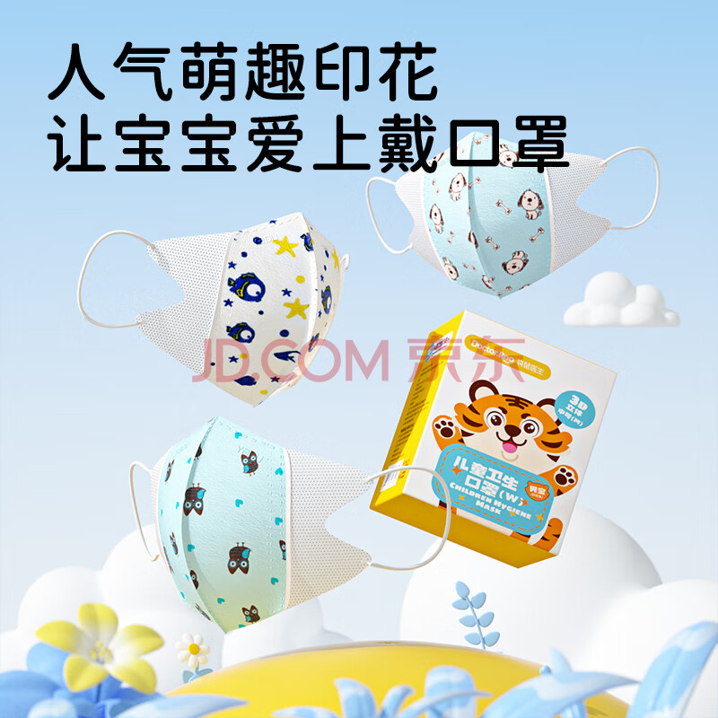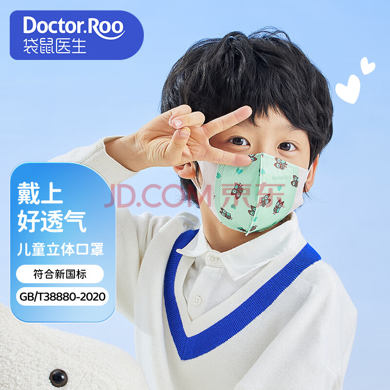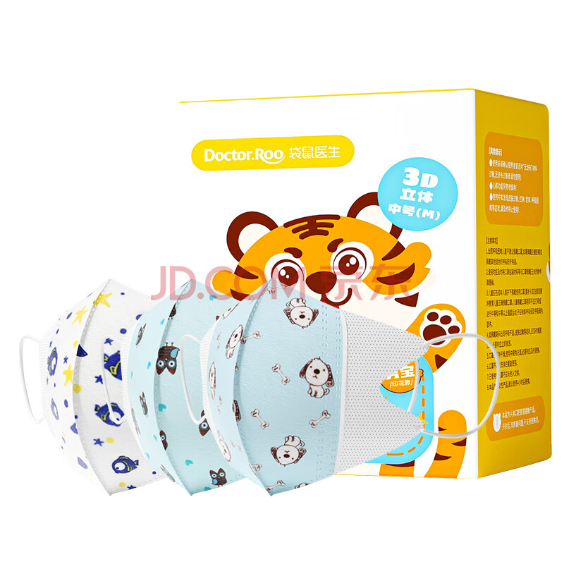 商品相册:袋鼠医生3D立体儿童口罩3-6岁亲肤透气防尘粉独立包装一只一袋30只/盒第