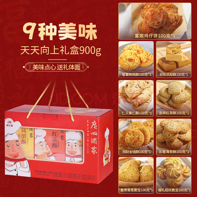 商品相册:广州酒家 天天向上礼盒900g 9味广式特产饼干酥饼休闲零食早餐团购伴手礼第