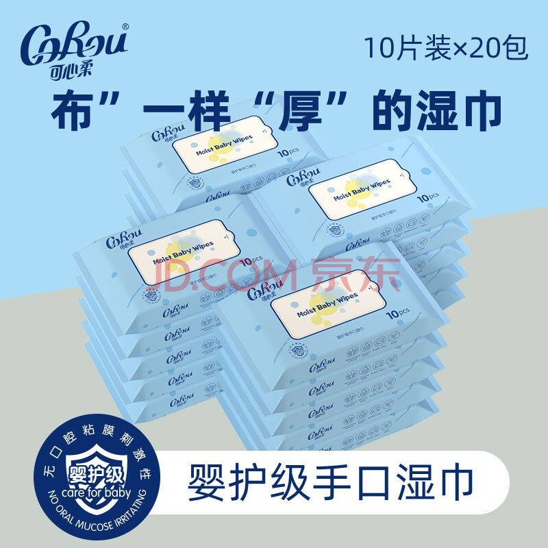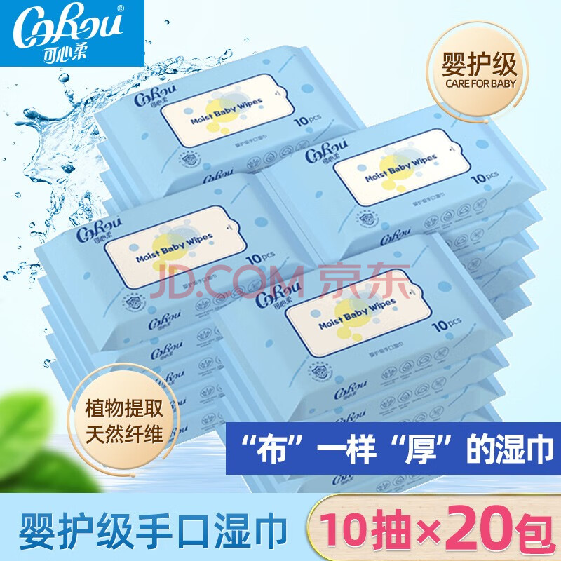 商品相册:可心柔(COROU)湿巾 10抽*20包 EDI纯水 加大加厚 手口屁可用第