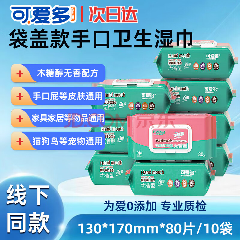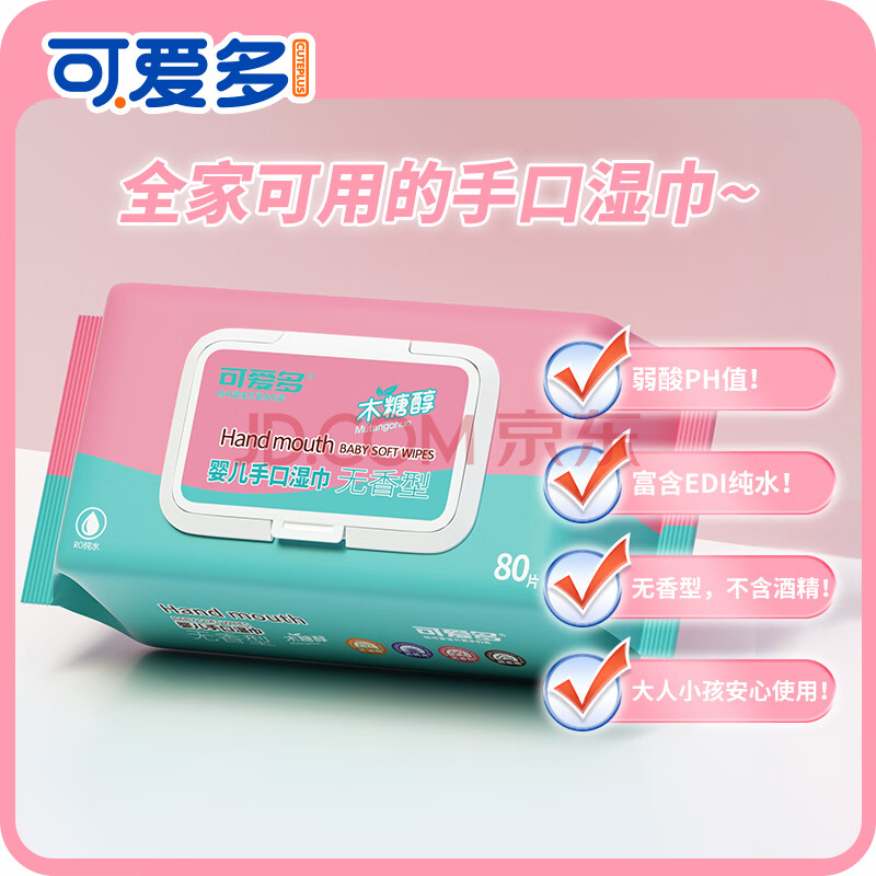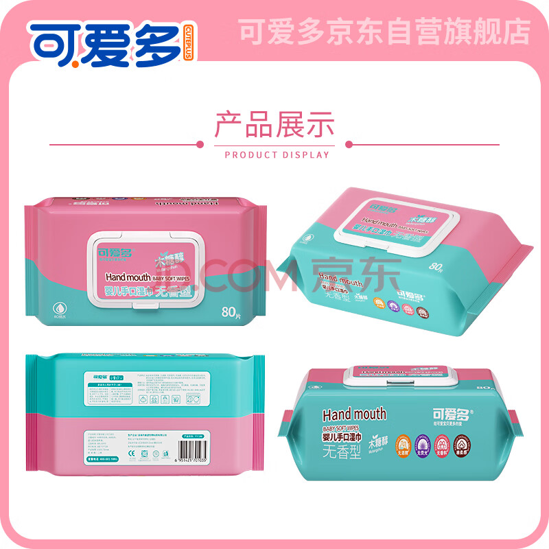 商品相册:可爱多婴儿手口湿巾 手口专用加厚尊享版 新生儿湿纸巾大包囤货80抽10包第