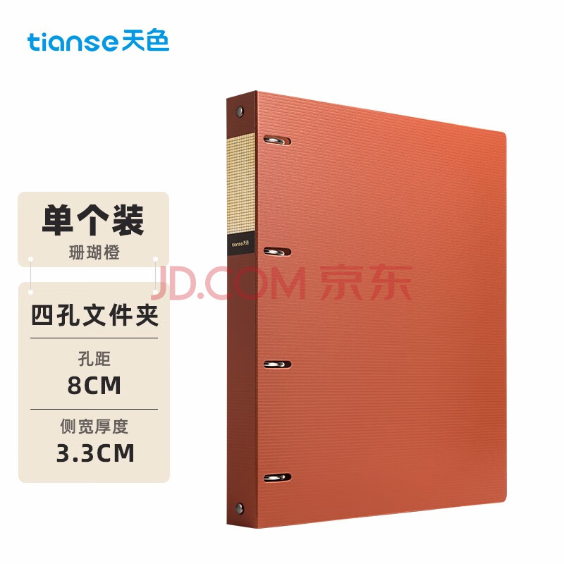 商品相册:天色四孔文件夹打孔a4活页夹插页资料册 多功能办公室收纳神器彩色穿孔大容量加厚强力夹TS-1615珊瑚橙第