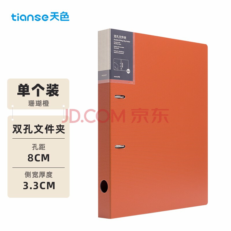 商品相册:天色两孔文件夹打孔a4二孔活页夹插页资料册多功能办公室收纳 彩色穿孔大容量加厚强力夹TS-1612珊瑚橙第