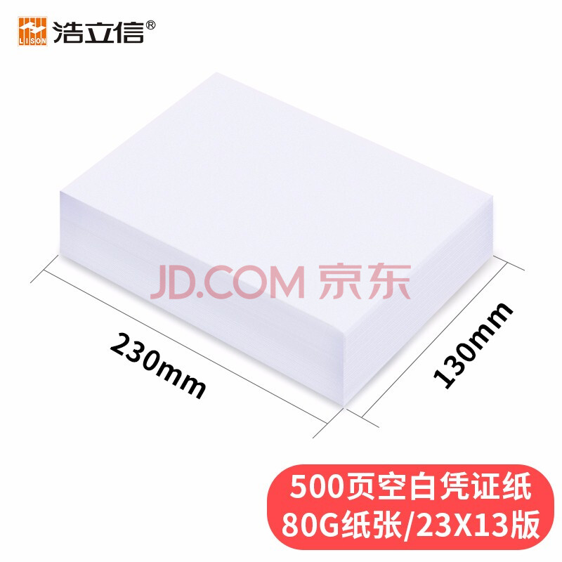 商品相册:浩立信(LISON)深汕 优选80G 230*130 500张/包通用木浆空白凭证纸财务办公用品会计记账单据电脑打印纸第