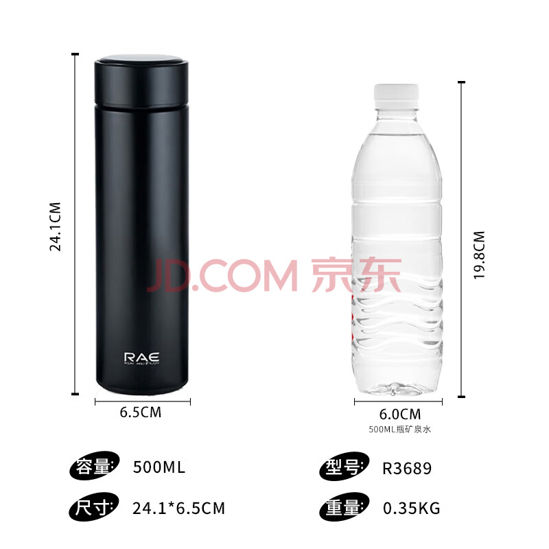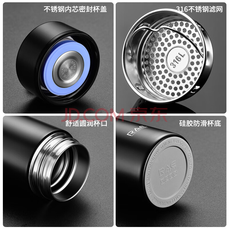 商品相册:然也保温杯定制大学生316L不锈钢泡茶杯子500ml黑色R3689第