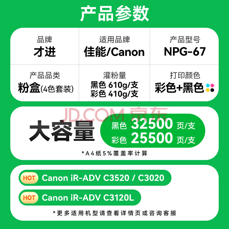 商品相册:才进佳能NPG-67粉盒C3020墨粉C3222l C3226 C3120L C3125 C3320复印机C3130L 3520碳粉盒3330 3025 G67硒鼓第