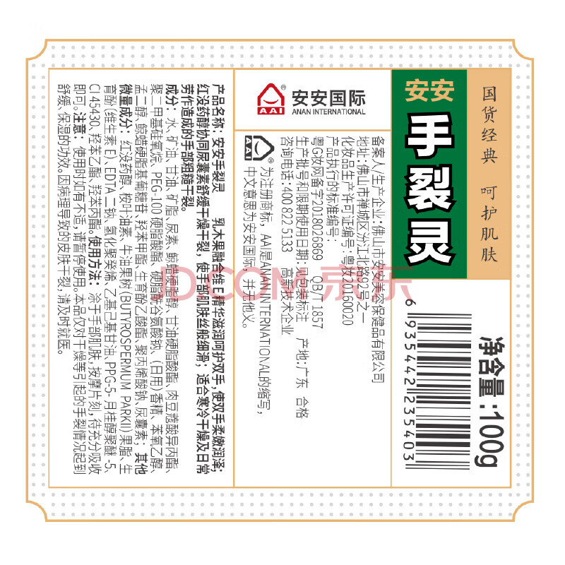 商品相册:安安金纯安安手裂灵100g防干防裂防冻护手霜舒缓冻裂擦手油男女适用第