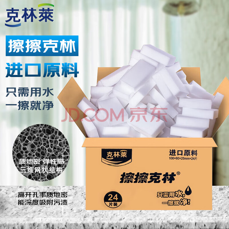 商品相册:克林莱擦擦克林纳米海绵密胺擦2.5*6*10cm24片去污神奇魔术擦厨卫清洁第1张/共9