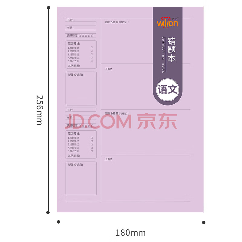 商品相册:惠朗(huilang)B5语文错题本 学生胶装纠错本改错本 学生错题整理本 40张/本 4本/包 1284第1张/共4