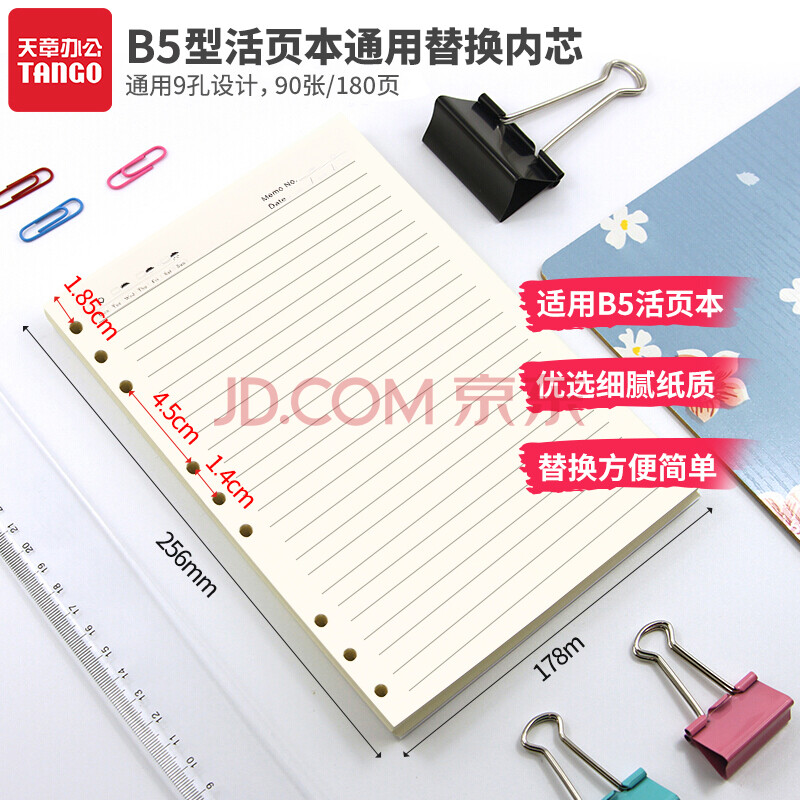 商品相册:天章(TANGO)B5活页替芯纸横线通栏款 适用9孔活页本考研错题作业日常笔记会议记录可拆卸通用替换芯 90张第