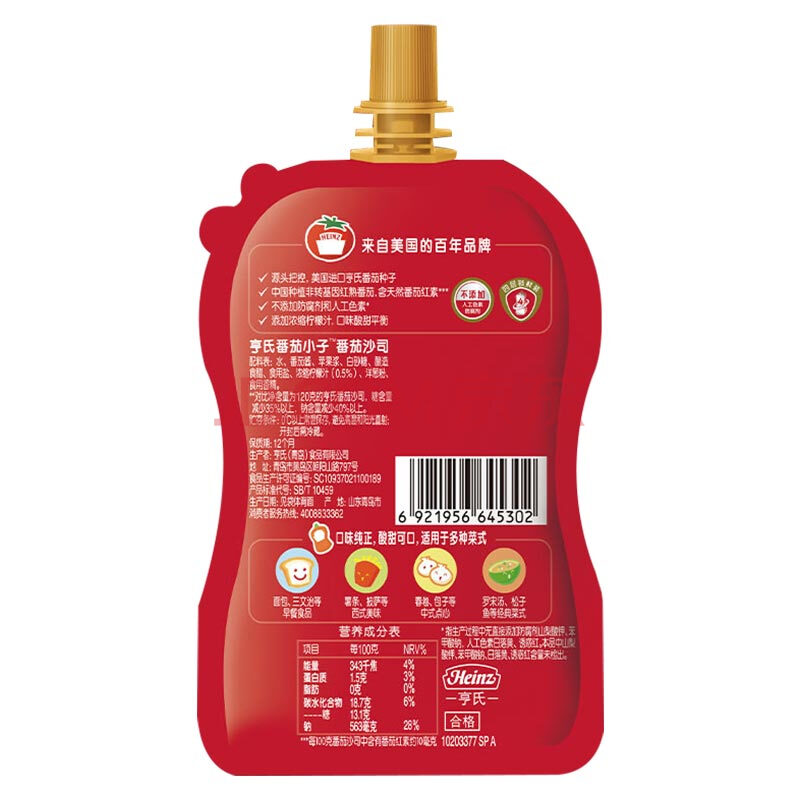 商品相册:亨氏(Heinz) 番茄酱 番茄小子番茄沙司110g*3袋 手抓饼披萨意面酱第