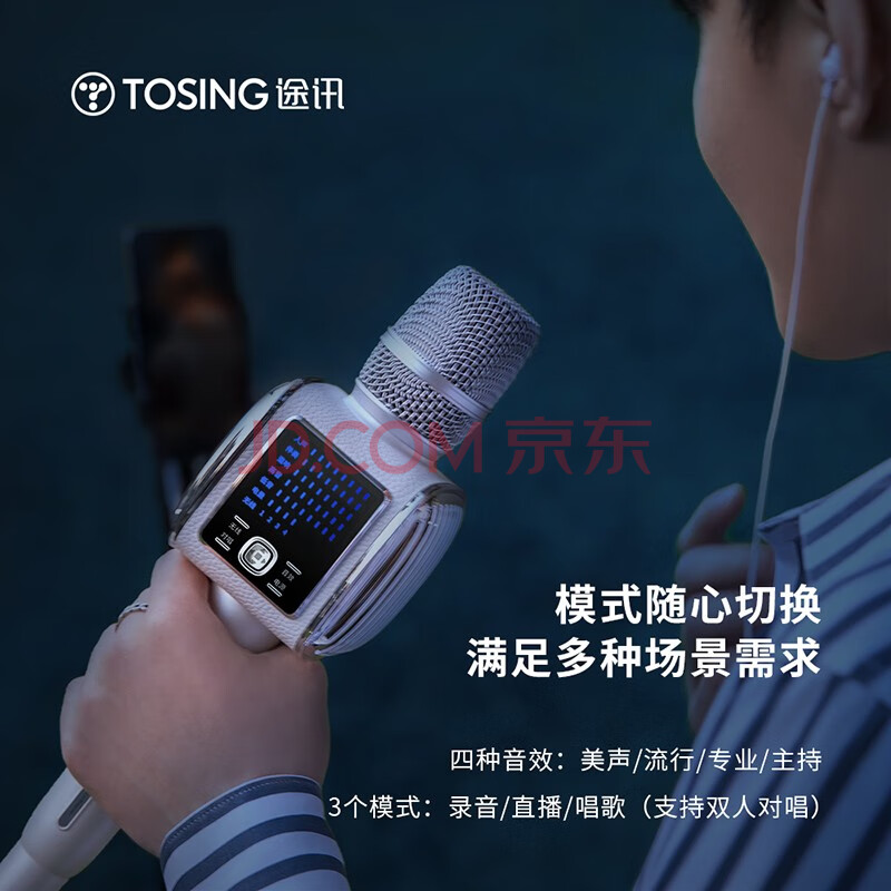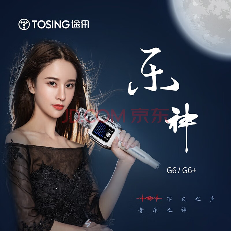 商品相册:途讯 G6+ 话筒音响一体麦克风 时尚智能屏幕 无线蓝牙手机K歌 U段连接 白月光第1张/共7