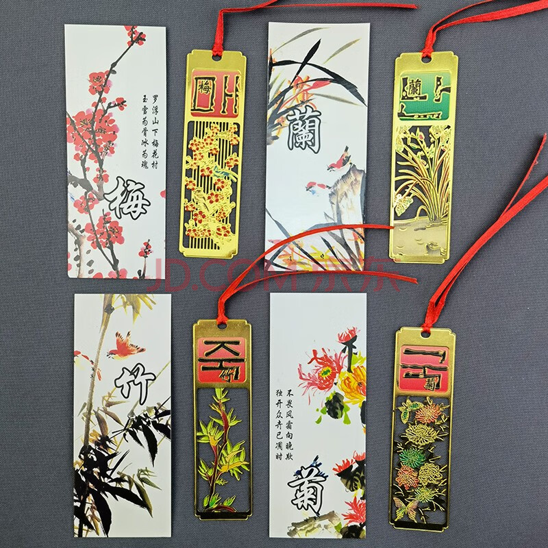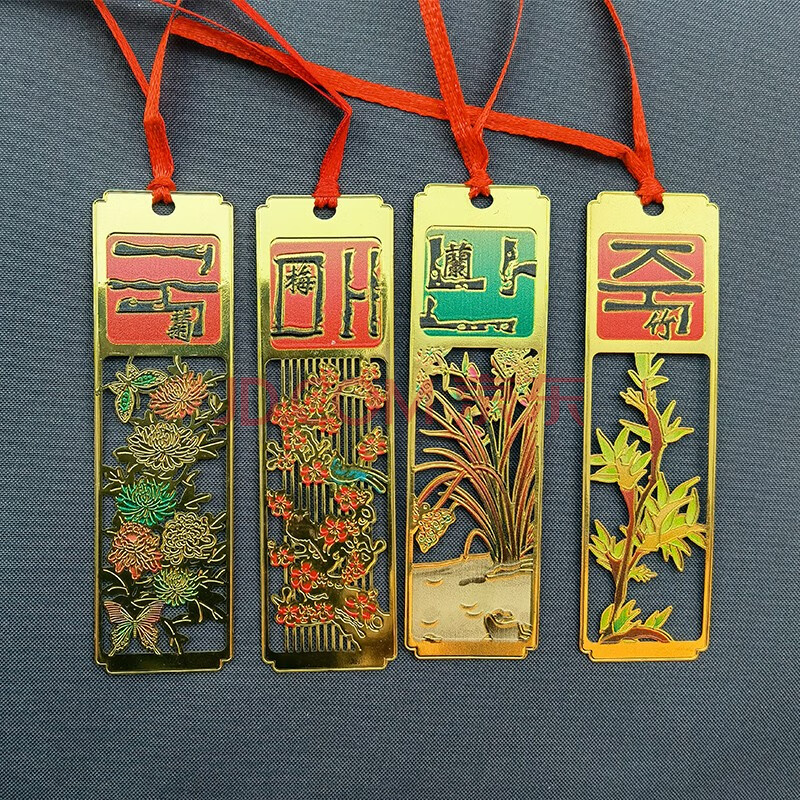 商品相册:芬尚 梅兰竹菊书签 黄铜镂空镀彩书签 创意中国风礼物 商务礼品 送老师同学朋友等 四个套装伴手礼第