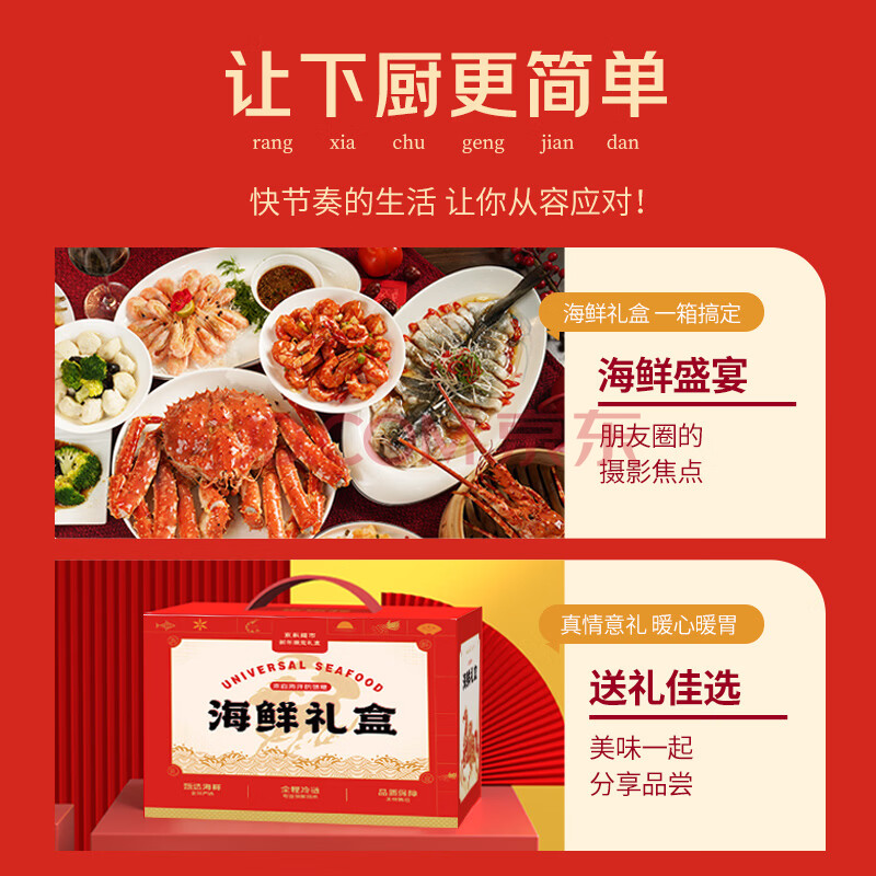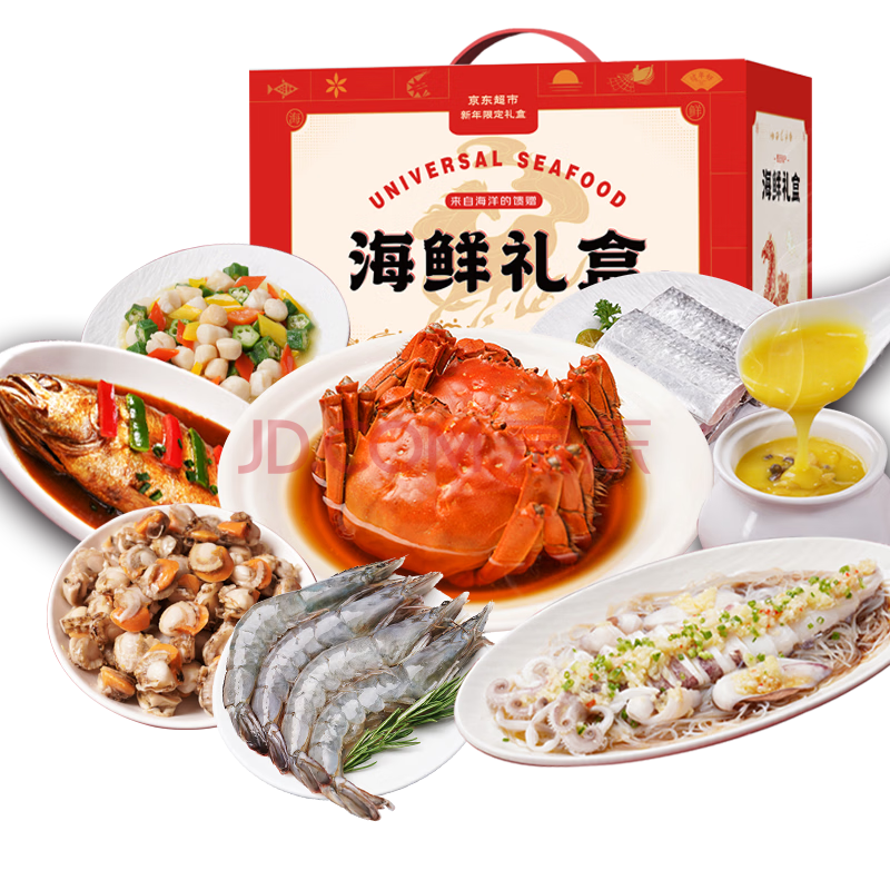 商品相册:【现货】鲜京采海鲜礼盒含大闸蟹大黄鱼大虾带鱼等8种6.2斤生鲜大礼包源头直发第