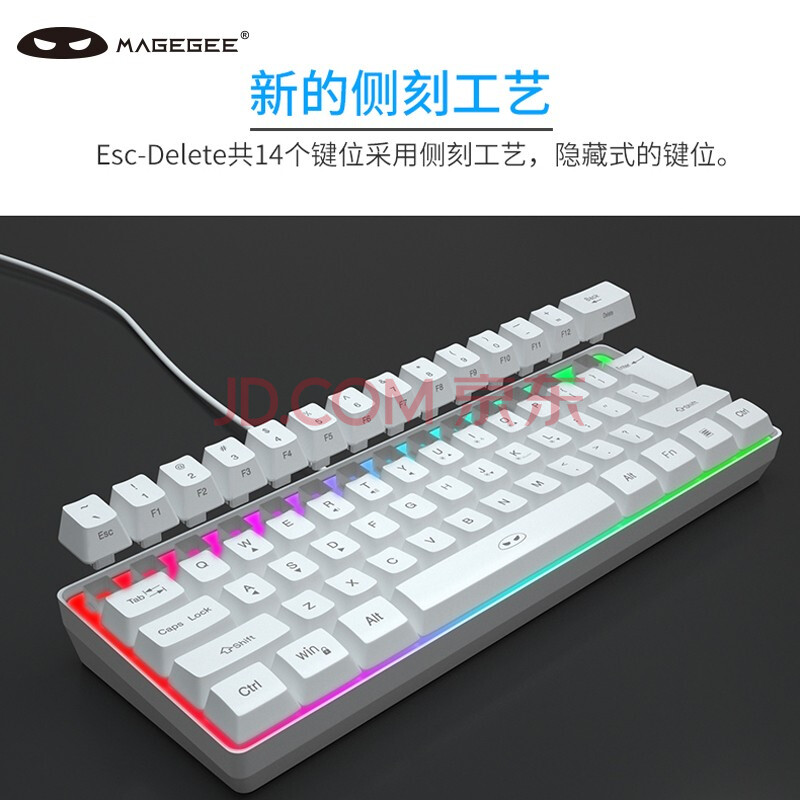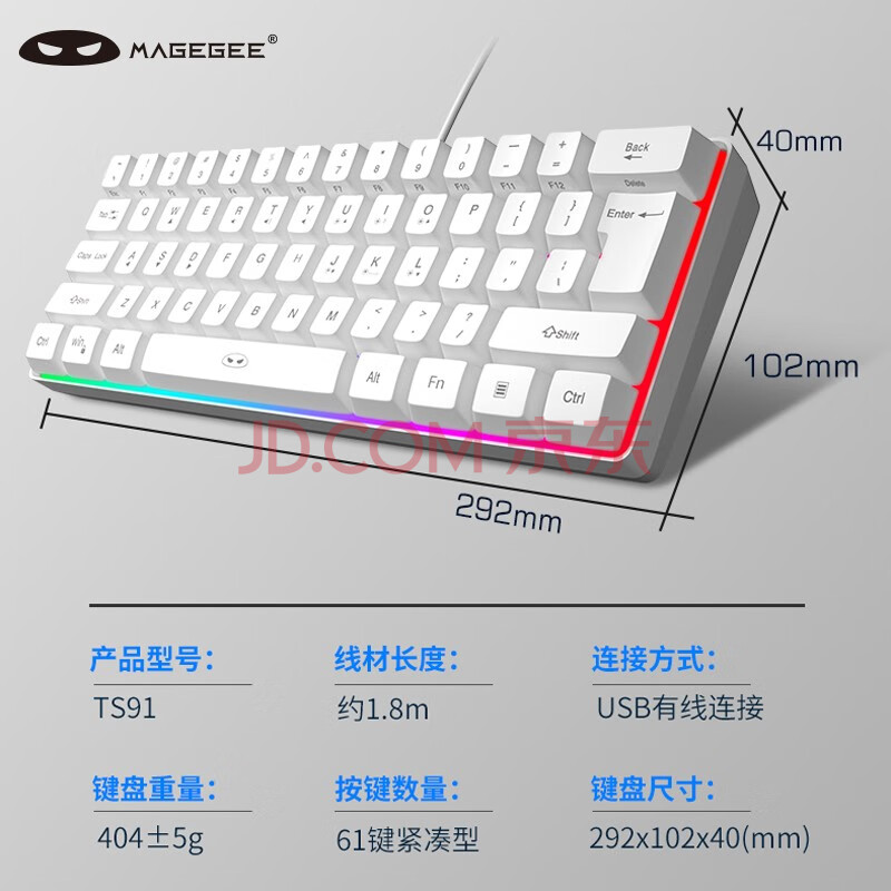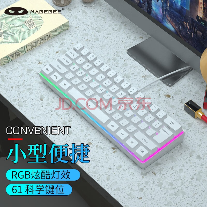 商品相册:MageGee TS91 有线mini小键盘 RGB背光机械手感游戏键盘 61键迷你便携薄膜键盘 电脑笔记本游戏键盘 白色第