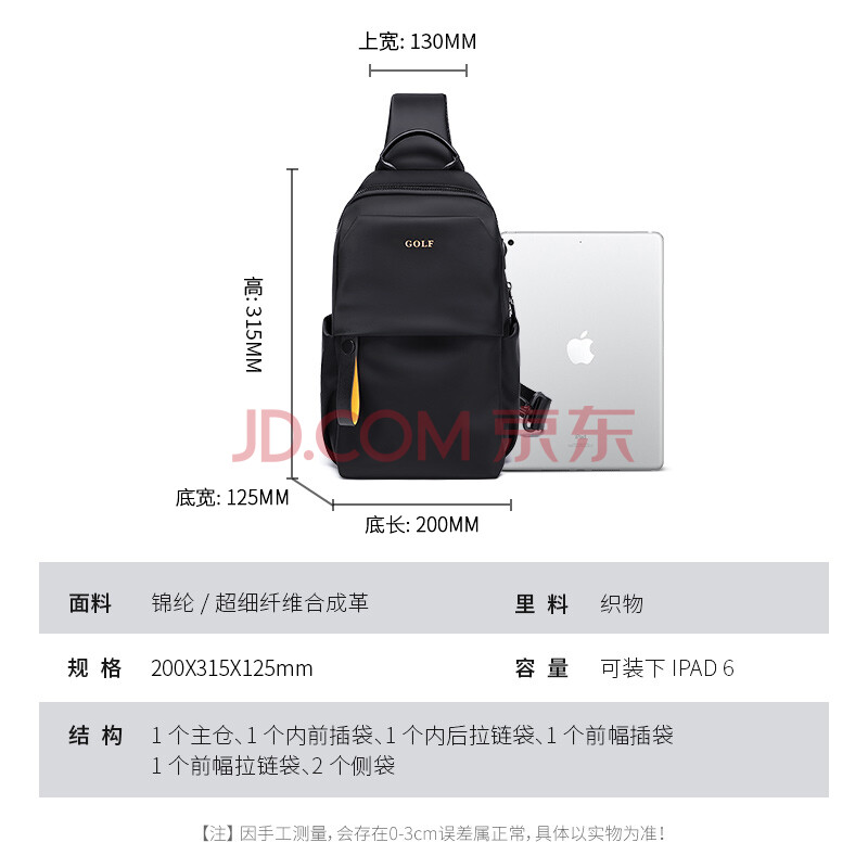 商品相册:高尔夫(GOLF)胸包男士斜挎包男潮流单肩包休闲ipad手机包骑行运动旅行小背包第
