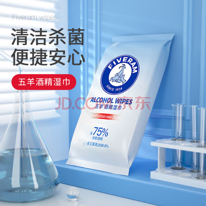 商品相册:五羊(FIVERAMS)75%酒精消毒湿巾10抽 便携湿纸巾除菌湿巾 一次性清洁棉片 第1张/共3