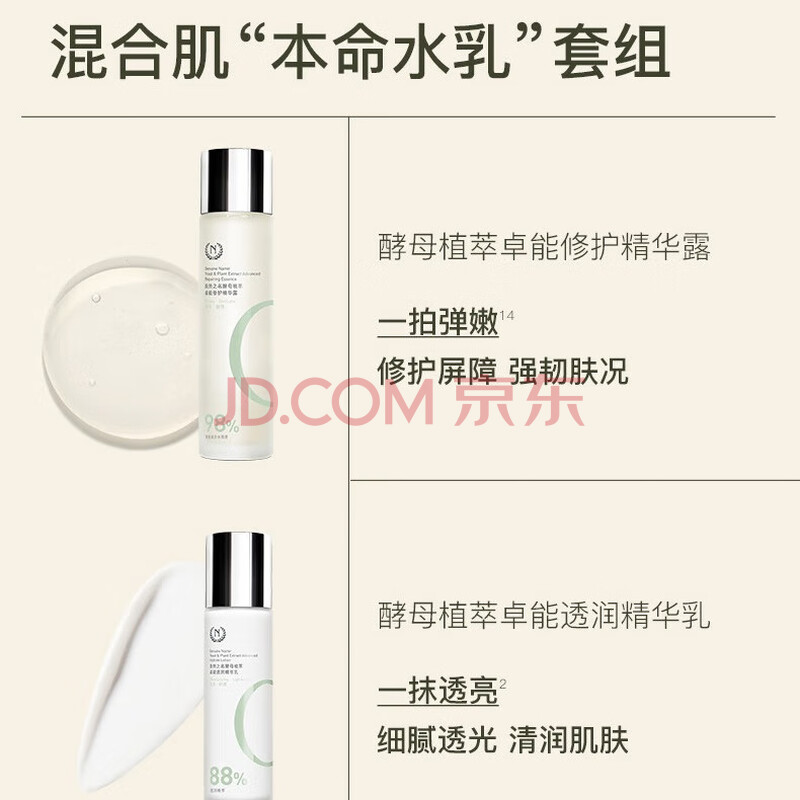 商品相册:自然之名水乳护肤品套装2件套水200ml+乳液100ml保湿修护第