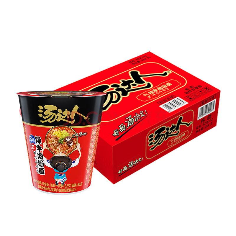 商品相册:统一汤达人 韩式辣牛肉汤面 杯面 82克*12杯 整箱批发 方便面泡面速食第