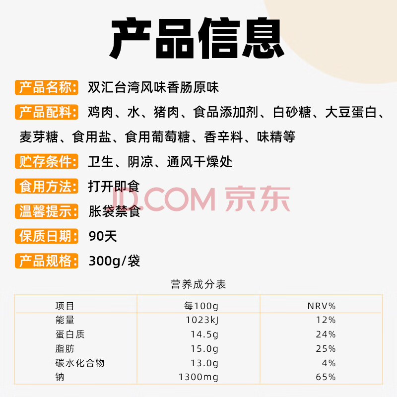 商品相册:双汇 台湾风味香肠300g 火腿肠 休闲零食 香肠 餐饮料理 露营 烧烤款第1张/共9