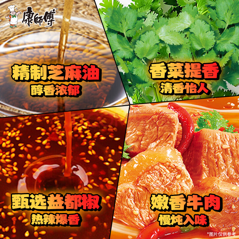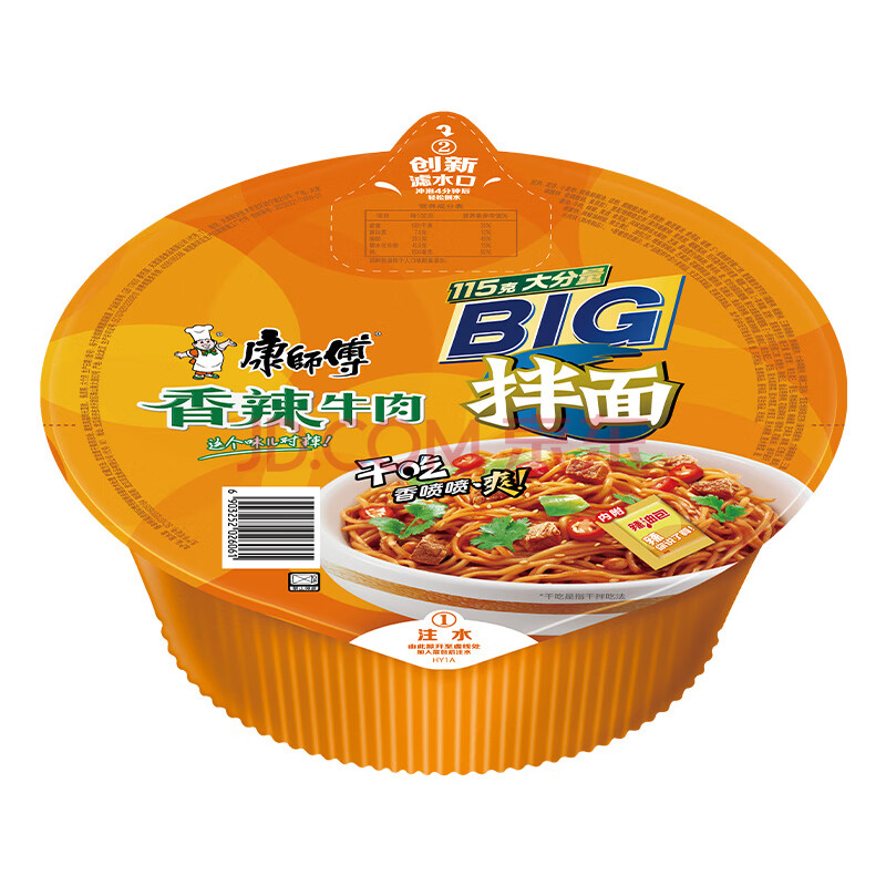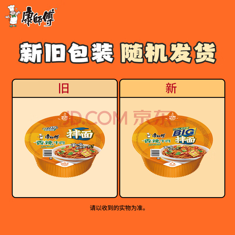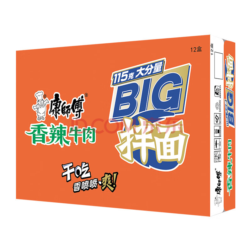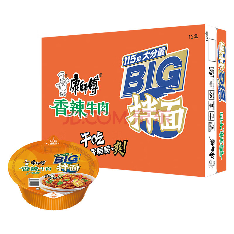 商品相册:康师傅 方便面 BIG干拌面 香辣牛肉面144g*12盒 泡面整箱速食 方便食品第