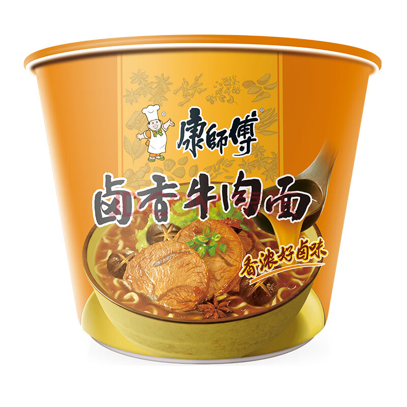 商品相册:康师傅 方便面 经典卤香牛肉桶面110g*12 泡面整箱速食 方便食品第