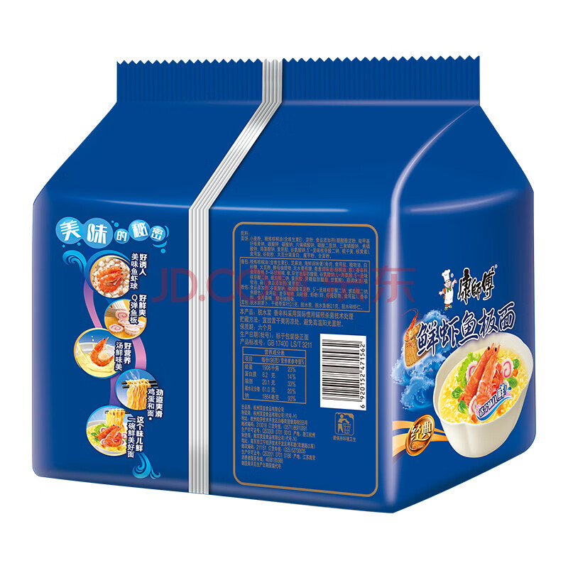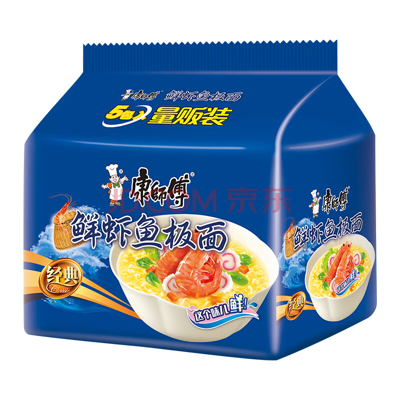 商品相册:康师傅 方便面 经典鲜虾鱼板面五连包98g*5 泡面袋装速食 方便食品第