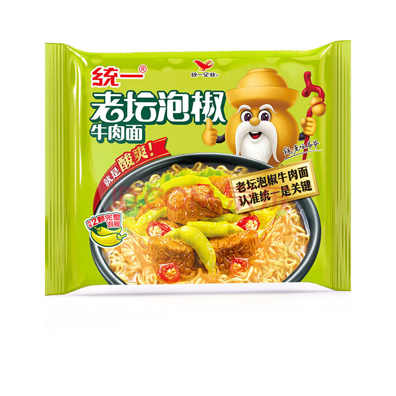 商品相册:统一老坛泡椒牛肉面 袋装 104g*5袋 五连包 传统老坛地道泡制速食泡面第