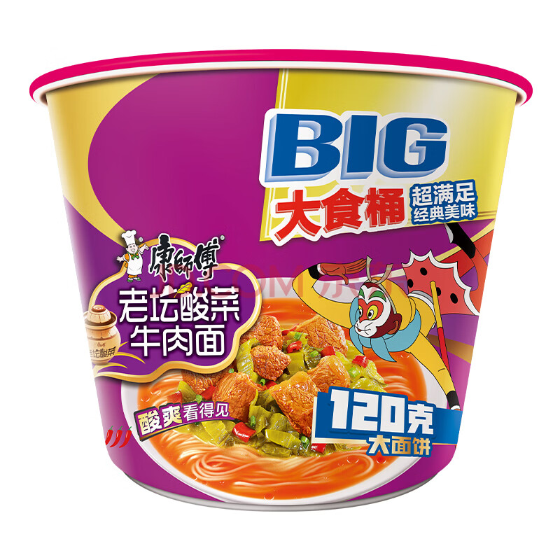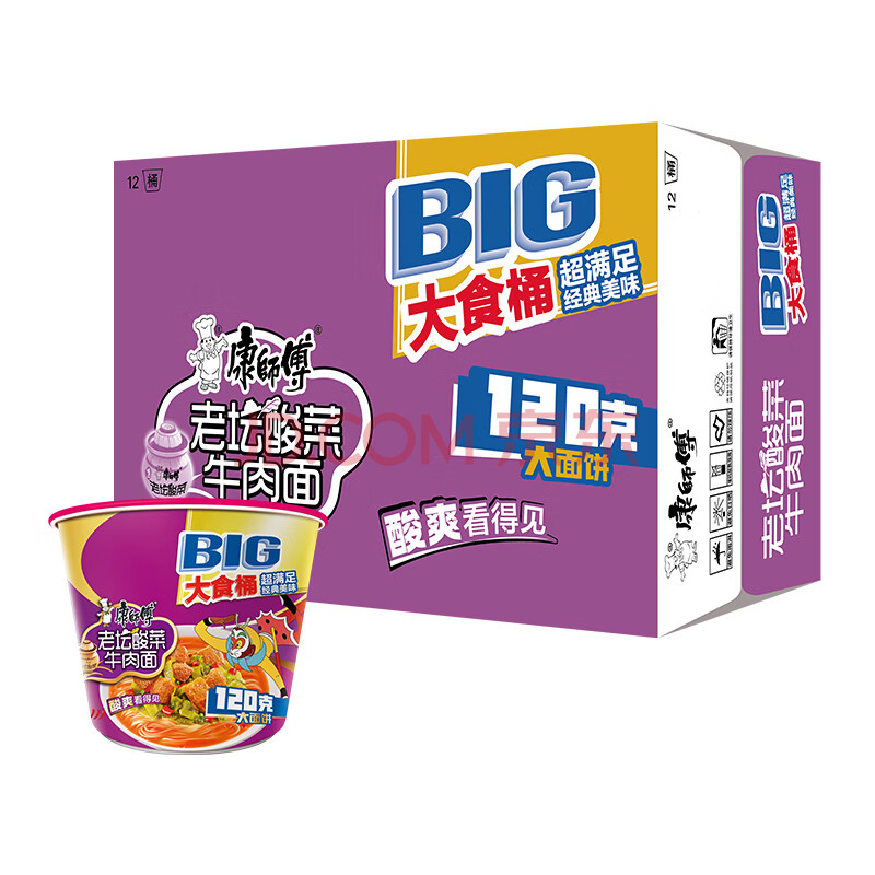 商品相册:康师傅 方便面 大食桶酸菜牛肉桶面159g*12 泡面整箱速食 方便食品第