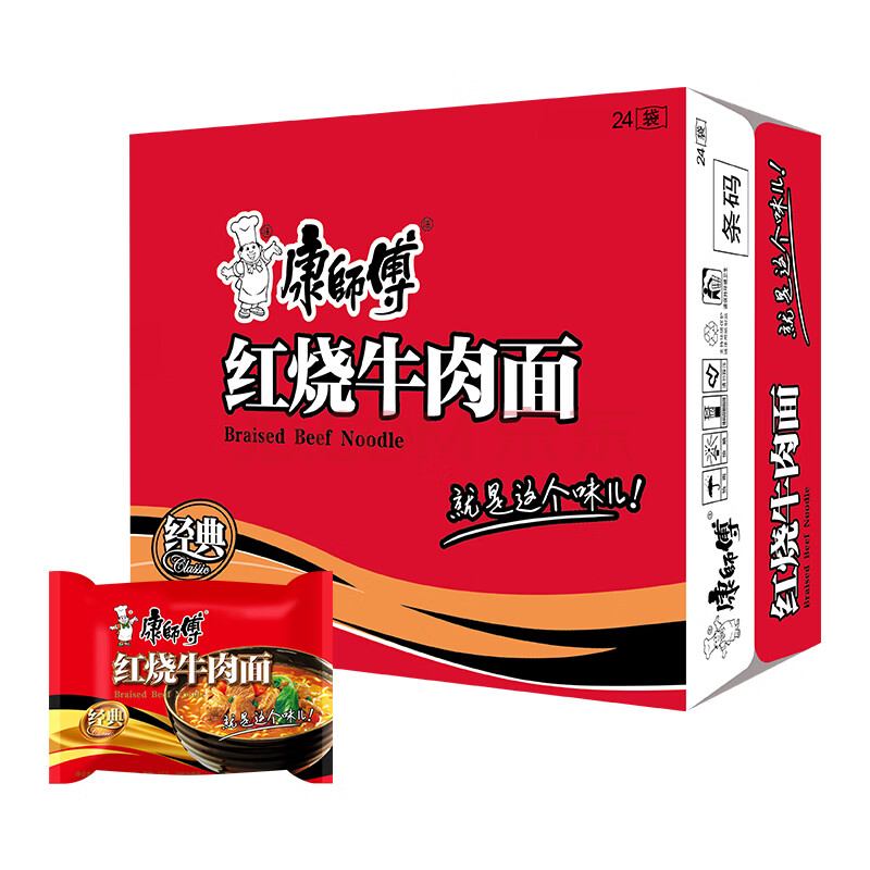 商品相册:康师傅 方便面 经典红烧牛肉面103g*24袋 泡面袋装整箱速食 方便食品第