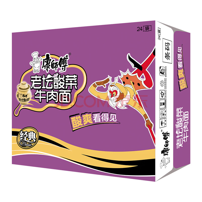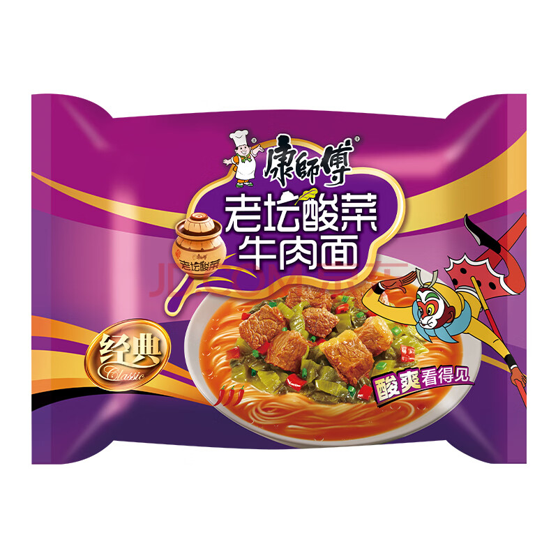 商品相册:康师傅 方便面 经典老坛酸菜牛肉袋面117g*24 泡面整箱速食 方便食品第