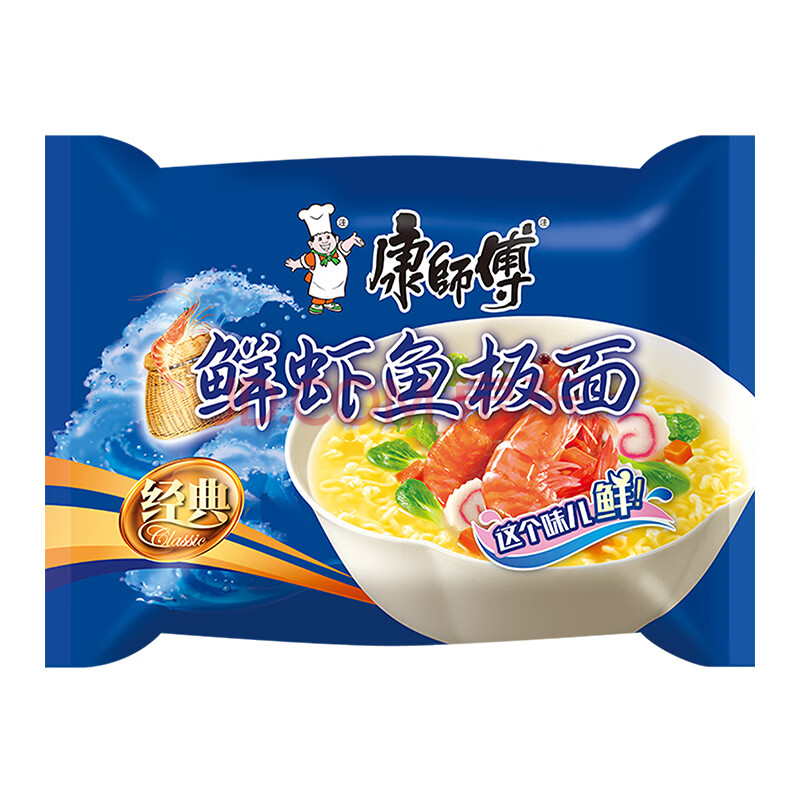 商品相册:康师傅 方便面 经典鲜虾鱼板袋面98g*24 泡面整箱速食 方便食品 第