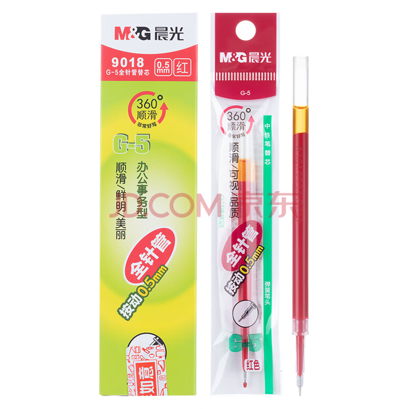 商品相册:晨光(M&G)文具G-5按动中性笔芯0.5替芯签字笔芯学生速干全针管水笔芯办公用品1008/K35/S01适用 红色20支/盒第