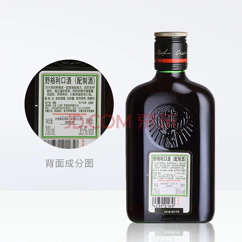商品相册:野格(Jagermeister)德国进口 鹿角利口酒 力娇酒调制配制酒 200ml第1张/共5
