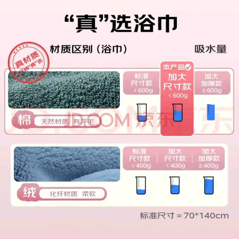 商品相册:金号纯棉加厚浴巾 家用吸水洗澡巾 男女加厚 140*72cm 500g 红色第