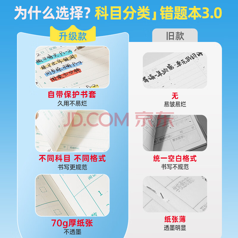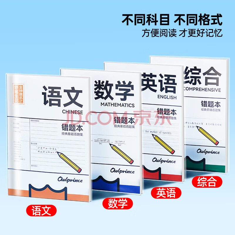 商品相册:猫太子开学必备错题本小学生胶套数学改错本初中一二三年级语文英语笔记纠错本作业登记本错题集学科笔记第