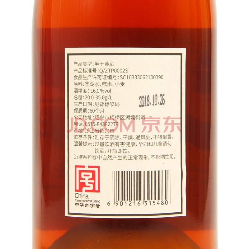 商品相册:塔牌 本原酒2012年 半干型 绍兴黄酒 1.38L 单瓶装 无焦糖色第