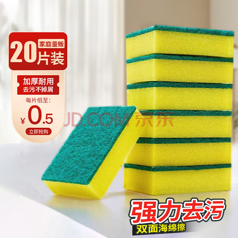 商品相册:妙然20片洗碗海绵擦百洁布厨房双面抹布清洁刷碗海绵块刷锅海绵抹布第
