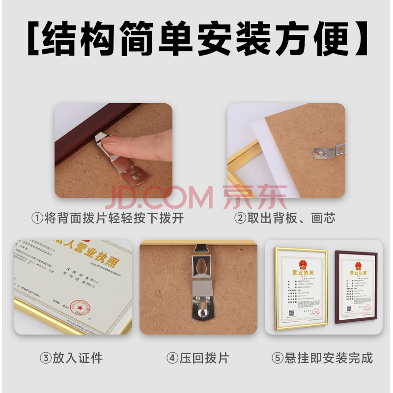 商品相册:优必利 A3证件框 相框 塑料证书框画框 A3营业执照框 工商税务登记证框 横竖证件框 金属色5063A第