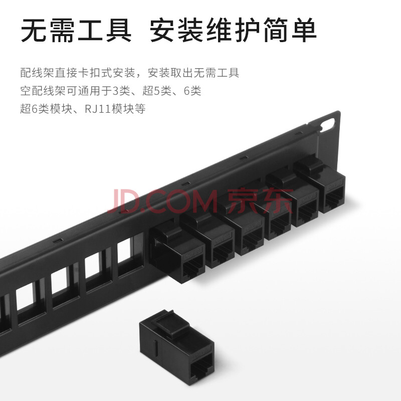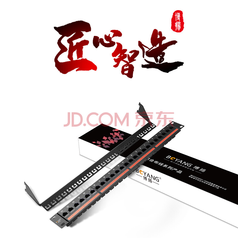 商品相册:博扬(BOYANG) 六类24口配线架直通型 19"机架式1U网络配线架 CAT6千兆网线RJ45跳线接线排(50μ"镀金)BY-6P-24Z第