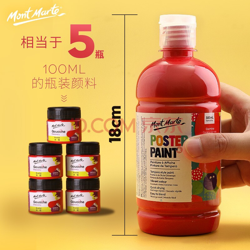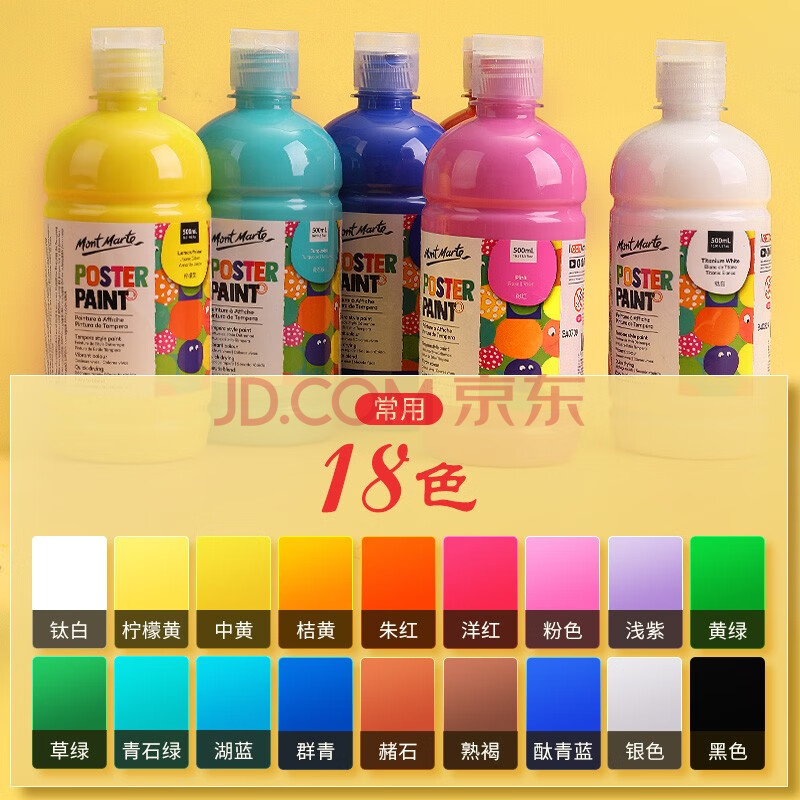 商品相册:蒙玛特(MontMarte)水粉颜料18色500ml水粉画颜料儿童画画罐装颜料套装大容量水洗绘画颜料VMPST0001-18s第