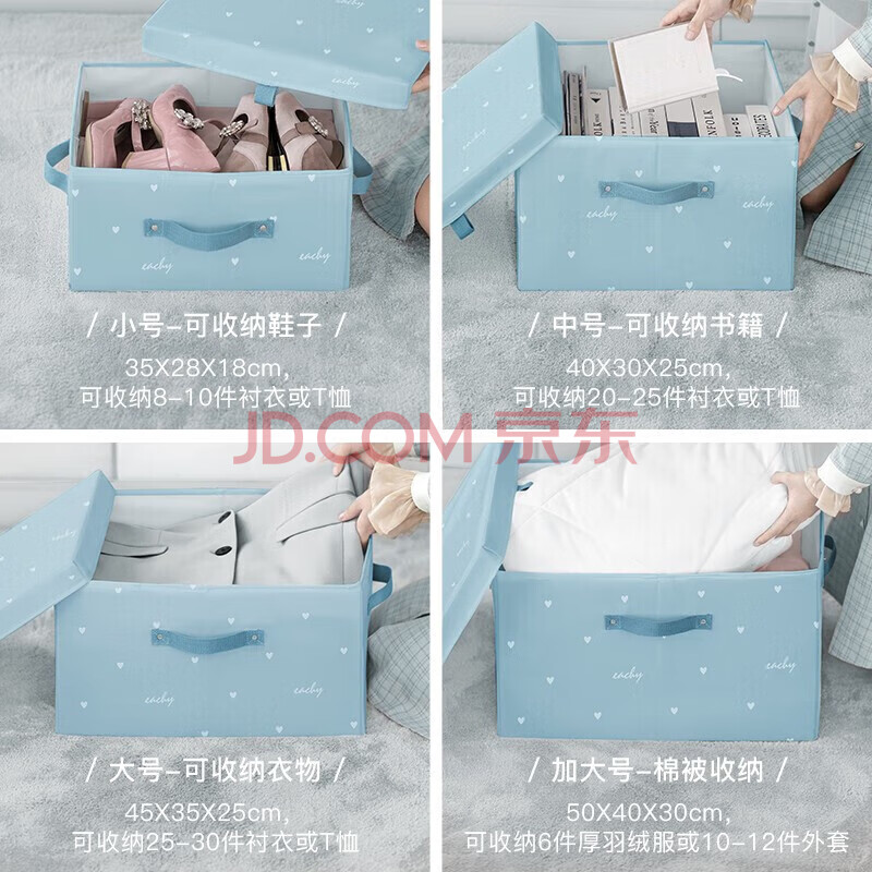 商品相册:EACHY衣服收纳箱衣物储物箱家用可折叠收纳盒 40L彼得蓝 1个装第