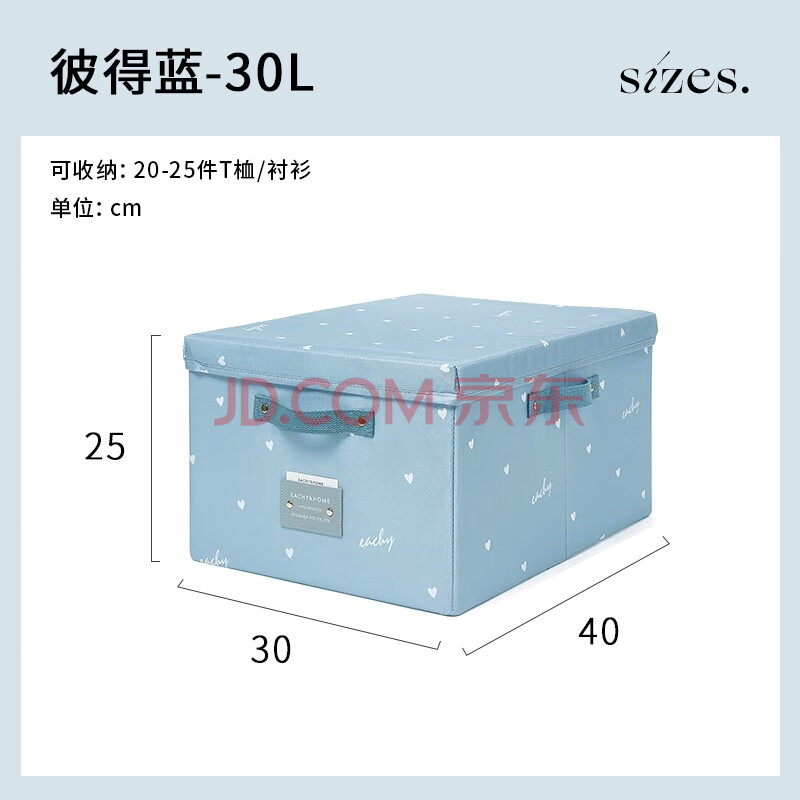 商品相册:EACHY衣服收纳箱衣物储物箱家用可折叠收纳盒 30L彼得蓝 1个装第