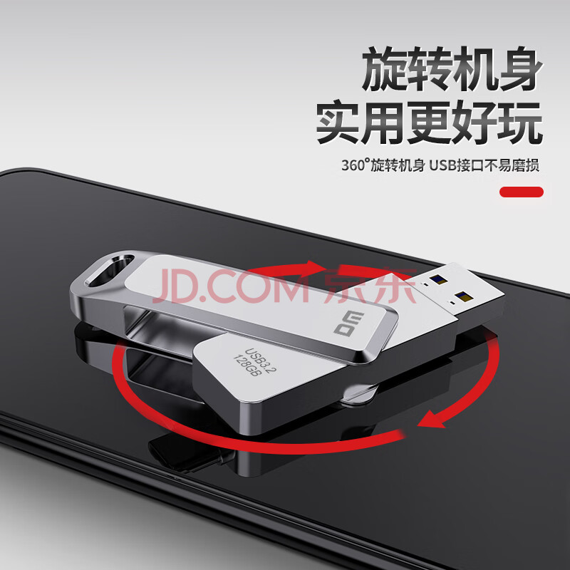 商品相册:DM大迈 128GB USB3.2 U盘 金属PD179追风 银色 可旋转电脑u盘车载优盘金属外壳高速读写第
