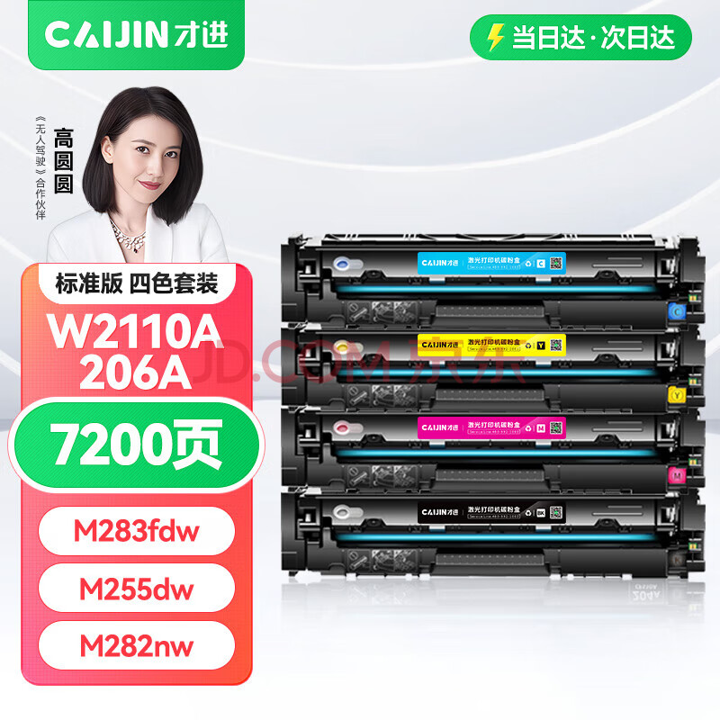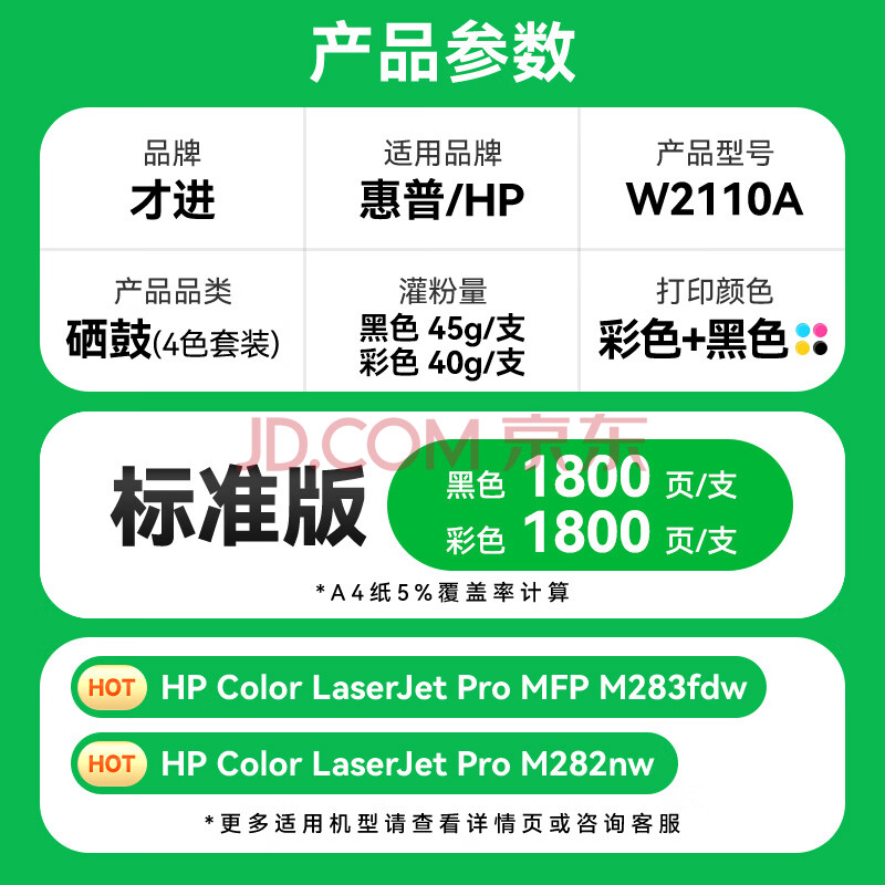 商品相册:才进适用惠普M283fdw硒鼓W2110A黑彩套装M255dw M282nw M283fdn粉盒M283cdw打印机碳粉盒hp206A复印机墨盒第